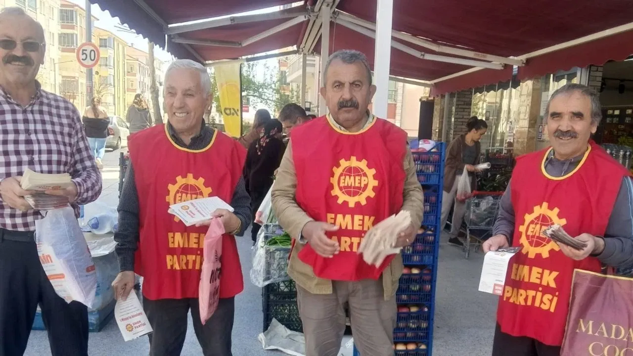 “İnsanca yaşam ve çalışma koşulları için, vergide adaletin sağlanması için, sendikal hak ve özgürlükler için, bağımsız-demokratik yargı ve adalet için, sınıfsız, sömürüsüz ve savaşsız bir dünya için” 1 Mayıs'ta alanlara” çağrısı yapan EMEP’liler, kentin farklı bölgelerinde dağıttıkları bildirililerle işçileri 1 Mayıs Perşembe günü yapılacak olan mitinge davet etti.