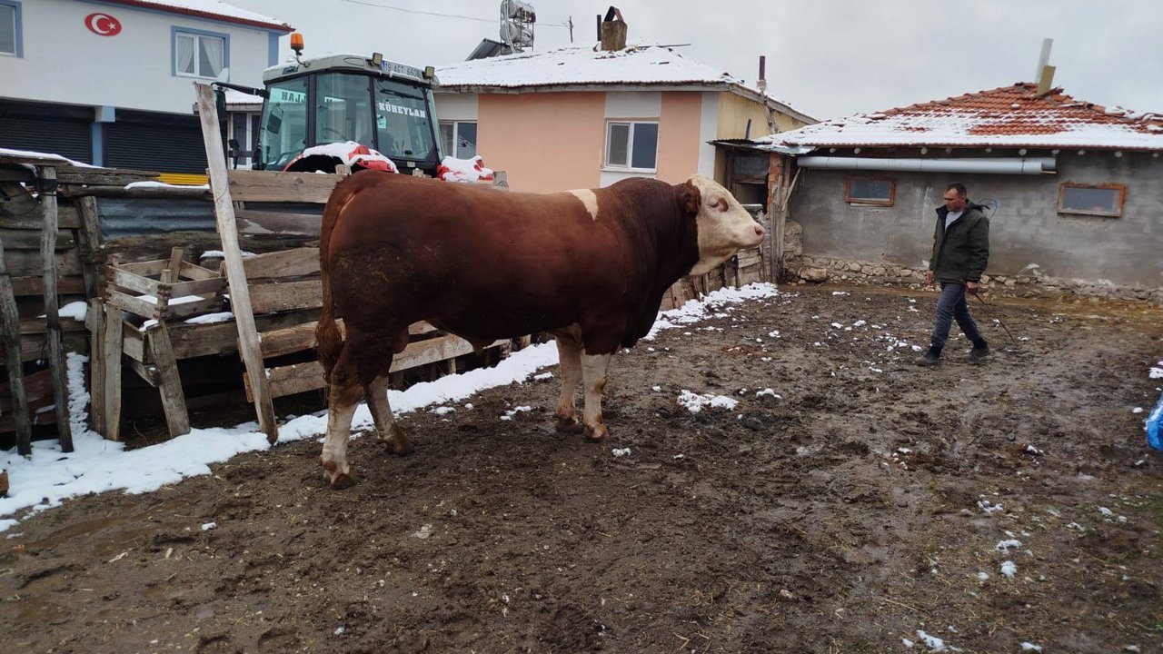 Muhtar Engin Karakoç tarafından özenle yetiştirilen, 2,5 yaşındaki simental cinsi boğa, yaklaşık 1 ton 100 kilo ağırlığa ulaşarak köyde heybetiyle dikkat çekti.