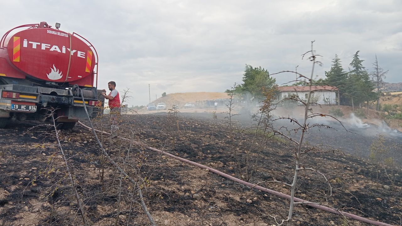 Çorum'un Dodurga ilçesinde çıkan yangında yaklaşık 10 dekar ağaçlık alan zarar gördü.