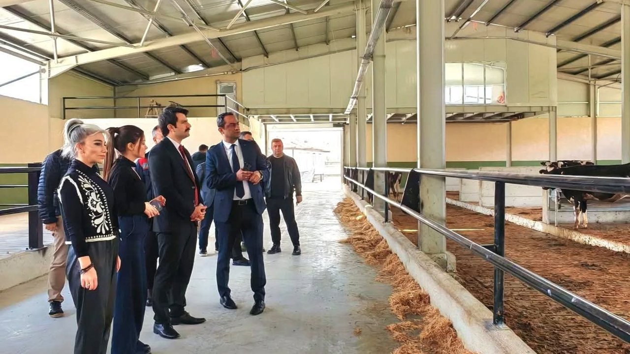 TKDK İl Koordinatörü Mustafa Mansur Yalvaçer ve Laçin Kaymakamı Murat Yeşilyurt, Laçin'in Mescitli Köyü'nde kurumun hibe desteği ile yatırımı yeni tamamlanan Serap Yıldırım'a ait 102 büyükbaş sağmal hayvan kapasiteli süt üretim işletmesini ziyaret eti.