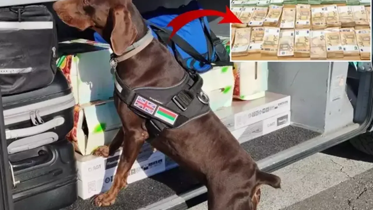 Köpek, memurlara buzdolabı çekmecesinin duvarının arkasında ve kahve makinesinin bulunduğu dolabın arkasında yerde saklı para olduğunu işaret etti. Burada bulunan toplam 351 bin 620 euronun beyan edilmediği tespit edildi.