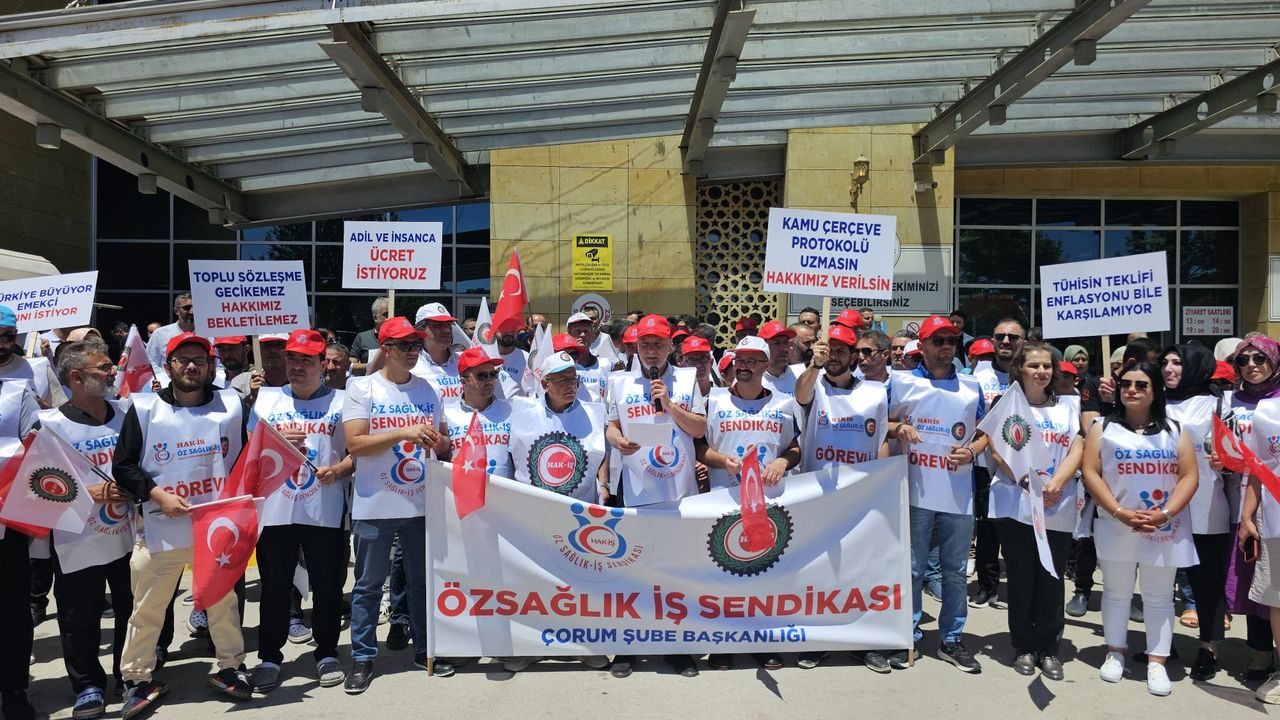 Öz Sağlık İş Sendikası Çorum İl Temsilcisi Hüsnü Aykan, yaptığı basın açıklamasında; “Bizler, emeğiyle geçinen insanlar olarak sadece adil bir ücret, insanca yaşam ve büyümeden hakkettiğimiz payı talep ediyoruz.” dedi
