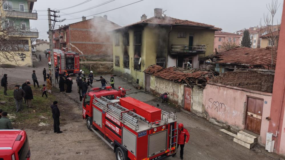 Çorum’da 7 kişilik bir ailenin yaşadığı 2 katlı evde çıkan yangın mahallede paniğe neden oldu.