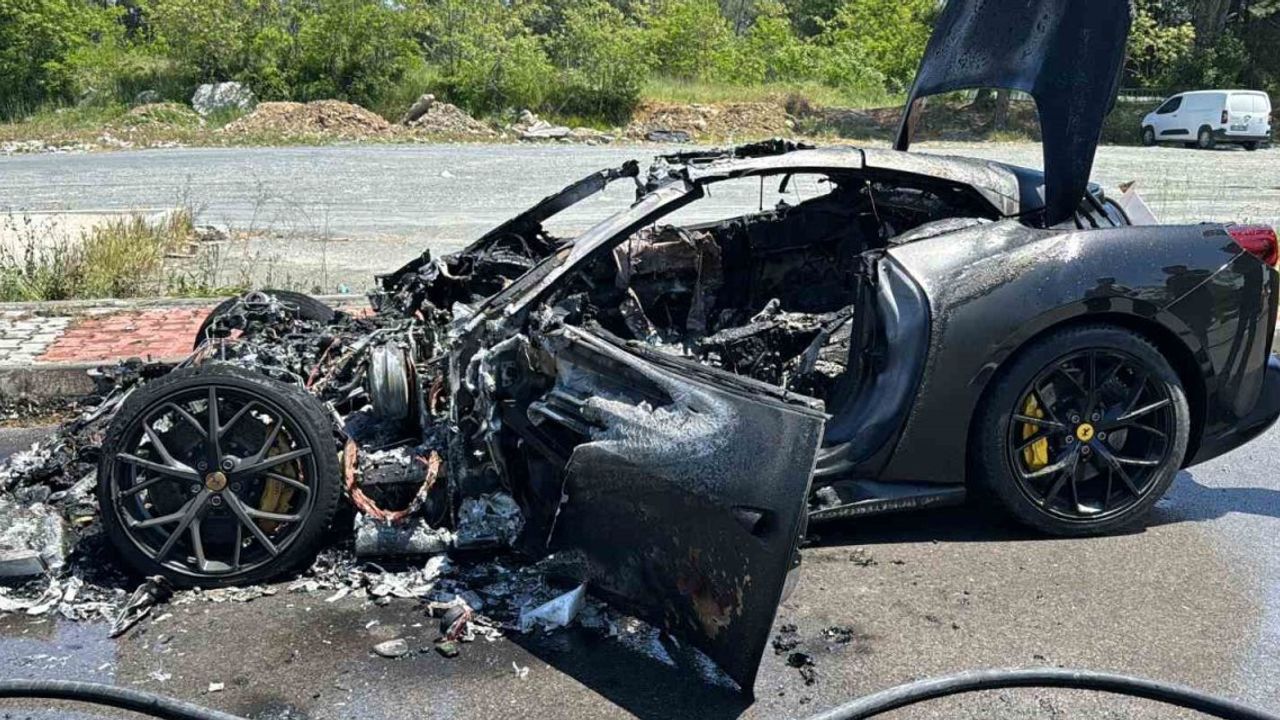 Olayda ölen ya da yaralanan olmazken lüks otomobil küle döndü.