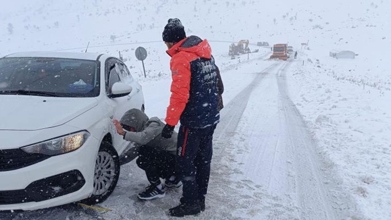 Şırnak'ta yoğun kar yağışı nedeniyle "turuncu kod" alarm verildi, farklı güzergahlarda 22 araç yolda kaldı.