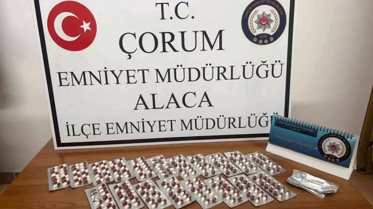 Edinilen bilgiye göre, Alaca İlçe Emniyet Müdürlüğü Asayiş Büro Amirliği ekipleri, Zile Caddesi'nde bulunan bir akaryakıt istasyonunda durumundan şüphelendikleri Y.K. durdurdu. Ekiplerce şahsın üzerinde yapılan aramada, 266 adet sentetik ecza hap ile 1.59 gram metamfetamin maddesi ele geçirildi. Konuyla ilgili gözaltına alınan Y.K. hakkında adli işlem başlatıldı.