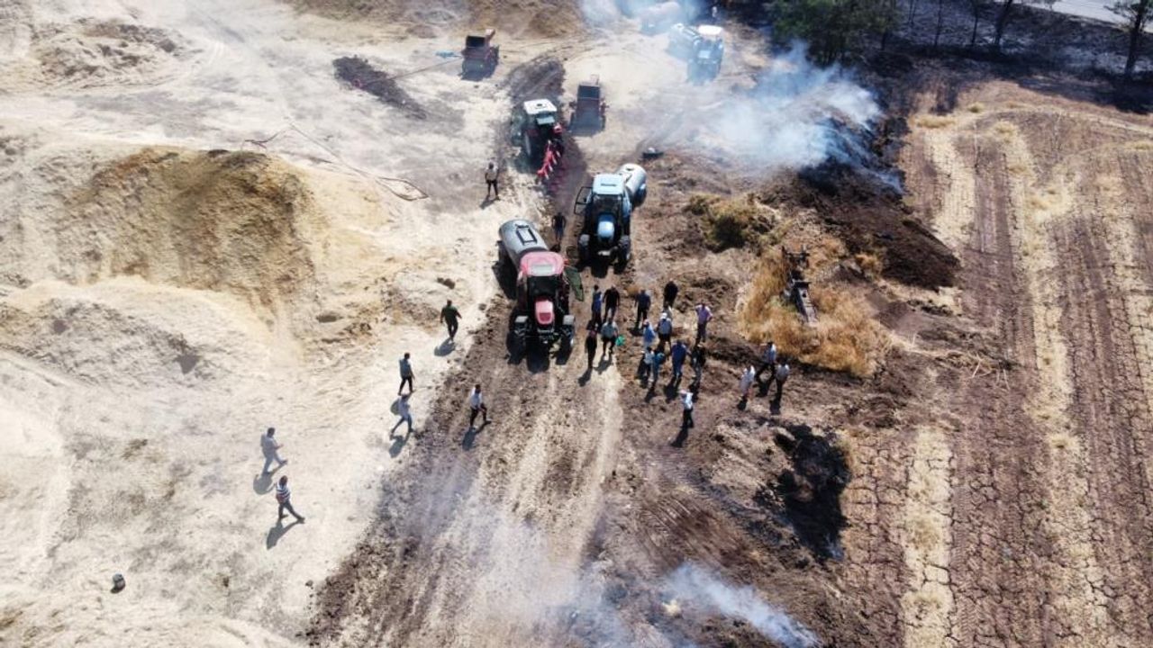 Yaklaşık 70 dönümlük anız arazisinin zarar gördüğü yangınla ilgili inceleme başlatıldı.