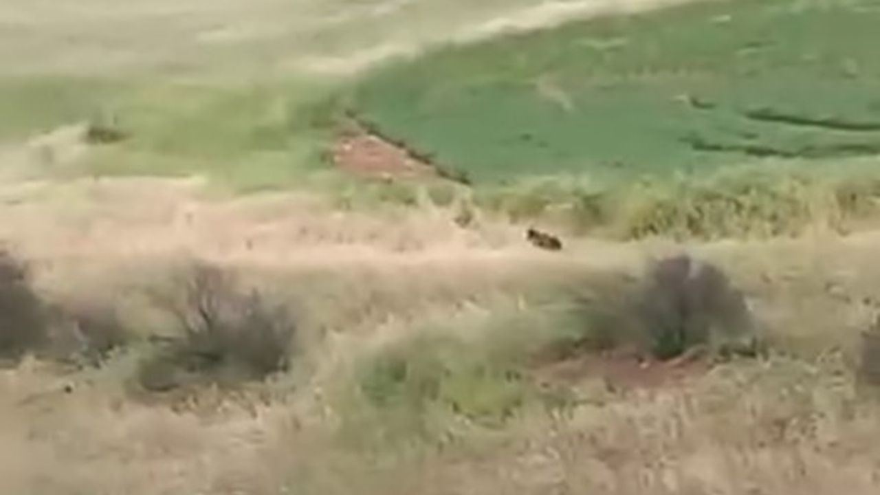 Ayıyı gören çiftçiler ses çıkararak ayıyı korkutmaya çalıştı. Köpekler de ayıyı kovalamaya başlayarak bölgeden uzaklaştırmaya çalıştı. Görüntülere de yansıyan ayı, kaçarak bir süre sonra gözlerden kayboldu.