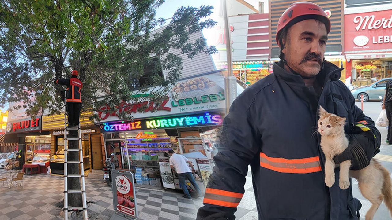 Çorum'un Sungurlu ilçesinde ağaçta mahsur kalan kedi itfaiye ekiplerince kurtarıldı.