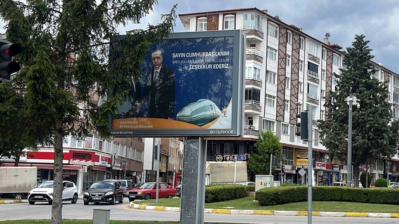 AK Parti Çorum Milletvekili Av. Yusuf Ahlatcı, hızlı tren yatırımından dolayı Cumhurbaşkanı Recep Tayyip Erdoğan’a şehrin dört bir yanına astırdığı afişler ile teşekkür etti.