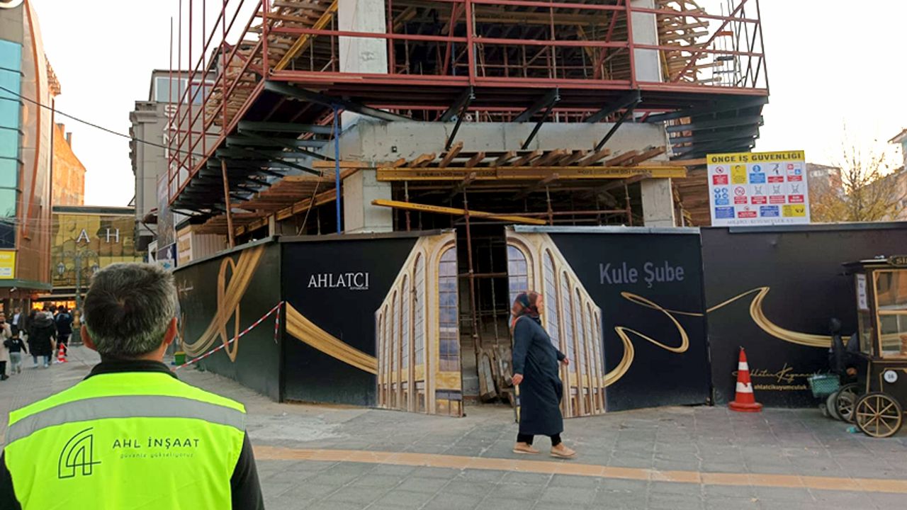 Eğridere Çarşısı'ndaki merkez binanın ardından eski Merih Hoteli ve Talat Eczanesi'nin bulunduğu 5 katlı binayı 2022 yılında yıkarak yeni şube için kolları sıvayan Ahlatcı'nın yeni binasında inşaat çalışmaları devam ediyor.