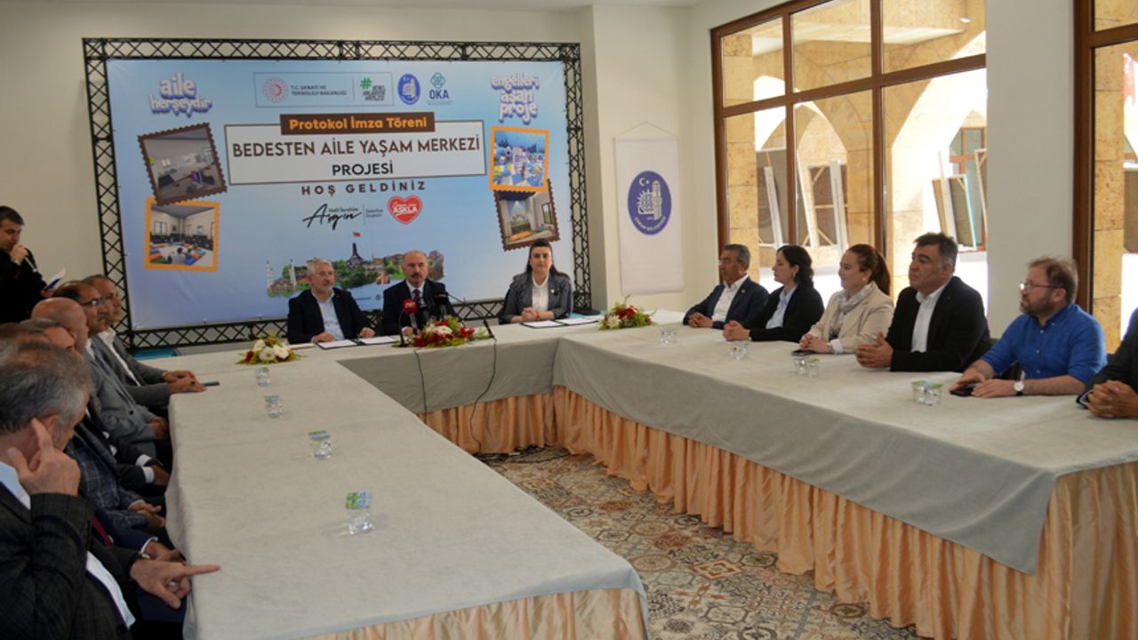 Konuşmaların ardından ‘Bedesten Aile Yaşam Merkezi Projesinin’ protokolünü Belediye Başkanı Dr. Halil İbrahim Aşgın ile OKA Genel Sekreteri Mehlika Dicle imzaladı.