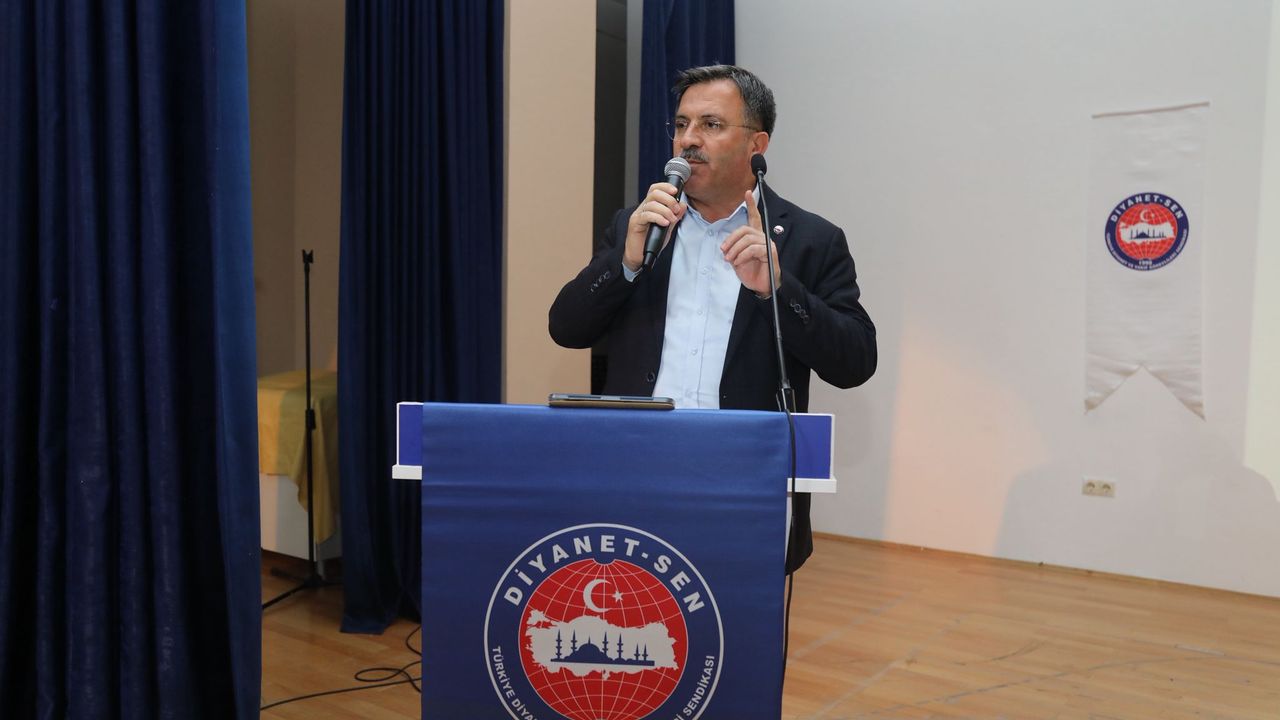 Şanal’dan sonra kürsüye gelen Diyanet-Sen Genel Başkanı hemşehrimiz Ali Yıldız da sadece özlük hakları bazlı bir sendikacılık anlayışını kabul etmediklerini ifade ederek, “Ülkemize ve gönül coğrafyamıza olan değerlerimize olan borçlarımızı yerimize getirme noktasında da filli olarak görev üstleniyoruz” diye konuştu.