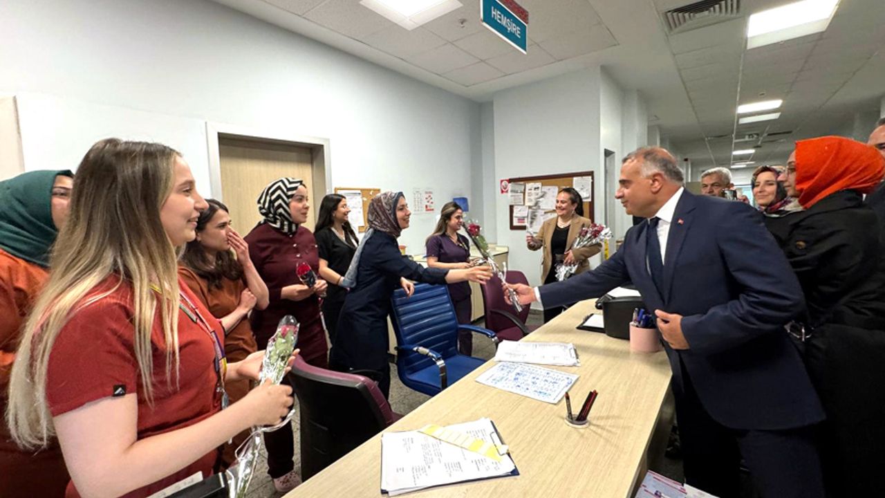 AK Parti İl Teşkilatı Hemşireler Haftası nedeniyle hastaneyi ziyaret ederek, hemşirelere gül hediye ettiler.