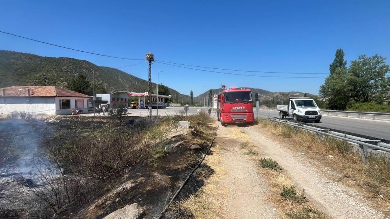 Çorum'un Osmancık ilçesinde akaryakıt istasyonunun yanında çıkan örtü yangını, itfaiye ekiplerinin müdahalesile söndürüldü.