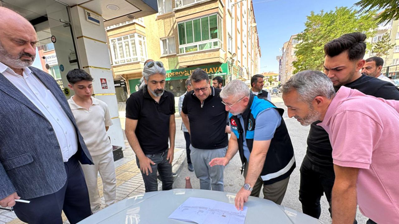 Albayrak Caddesi’nde yapılacak çalışma öncesinde incelemelerde bulunan Aşgın’a esnaf teşekkür etti.