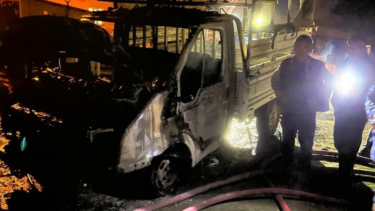 İtfaiyenin söndürdüğü yangın, kamyoneti kullanılmaz hale getirdi.