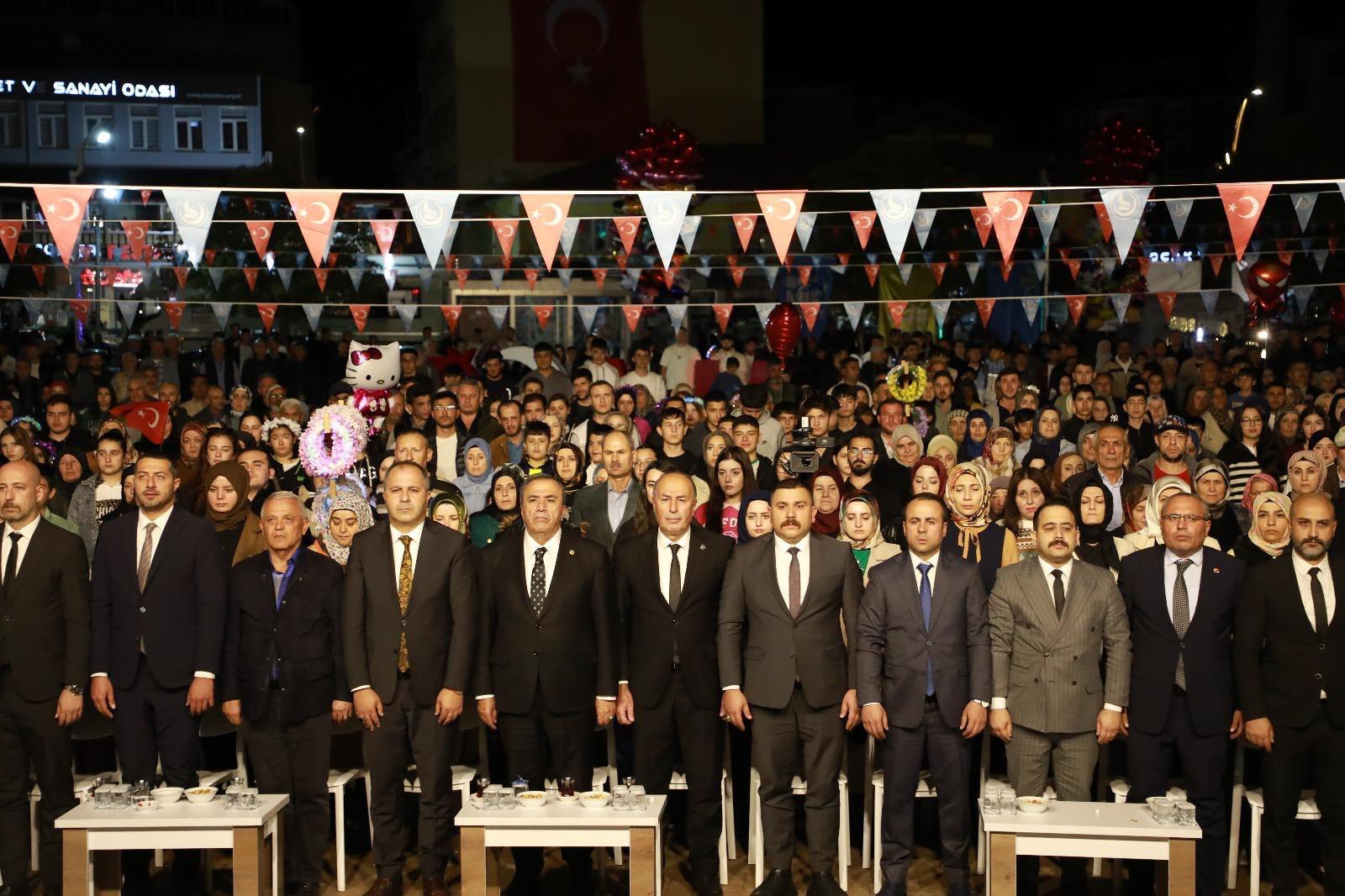 Cumhuriyet Meydanı’nda düzenlenen programda bir araya gelen yüzlerce Alacalı, ellerindeki Ay Yıldızlı Türk bayraklarıyla Alı Kınık’ın ezgilerine birlikte eşlik ederek, doyasıya eğlendiler.