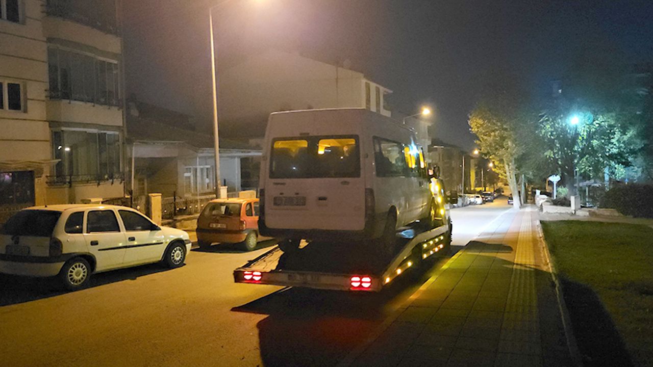 İşlemleri için polis merkezine götürülen V.T'nin kullandığı minibüs trafikten men edilerek çekici ile otoparka götürüldü.