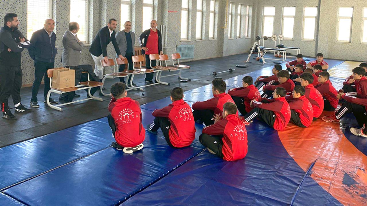Şehit Mustafa Solak Anadolu İmam Hatip Lisesi Spor salonunda yeni sezon çalışmalarına başlayan güreyçileri ziyaret eden Anitta Otel Müdürü Selahattin Şahin ve Harun Ceylan burda antrenörler Yasin Bolat ve Uğur Çadır tarafından karşılandı.