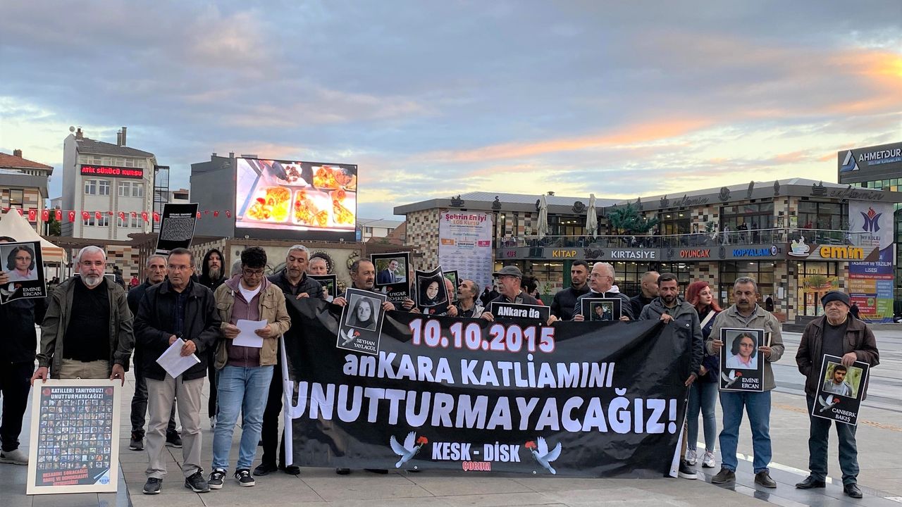 Çorum Emek ve Demokrasi Platformu adına Eğitim Sen Şube Başkanı Kenan Sırma tarafından yapılan açıklamada; "10 Ekim katliamıyla ilgili gerek hukuki süreç ve gerekse de siyasal arka planı bu gerçeklik görülmeden ele alınamaz. Katliamdan hemen sonra katliamın oylarını nasıl etkilediğini öğrenmek için anket yaptıran siyasal anlayış sorgulanmadan bu katliam aydınlatılamaz!” denildi.