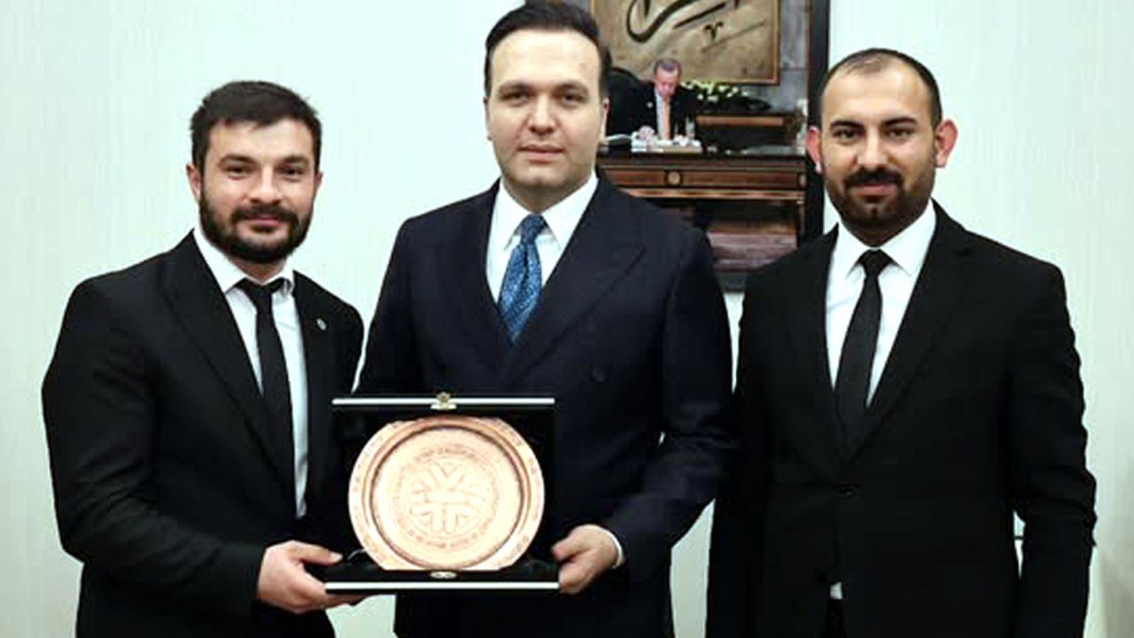 Ferhat Arıcı ziyaret sonunda Yusuf İbiş’e teşekkür plaketi verdi.