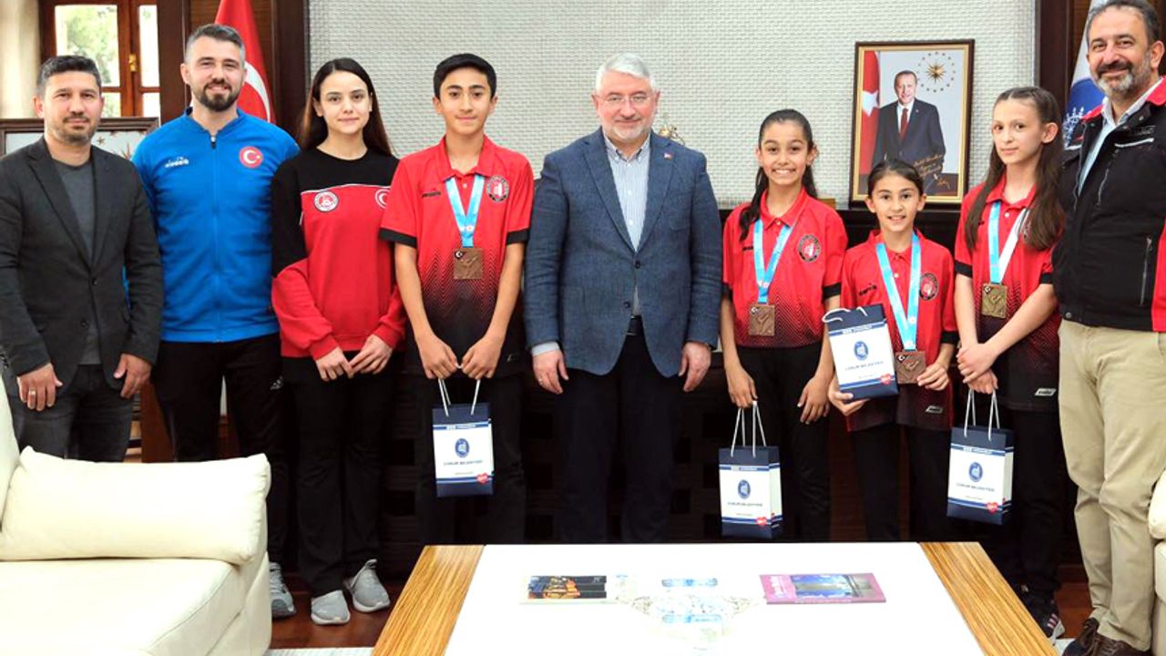 Aşgın katılacakları Balkan Şampiyonasında sporculara başarılar diledi ve ziyaret sonunda sporcuları başarılarından dolayı ödüllendirdi.