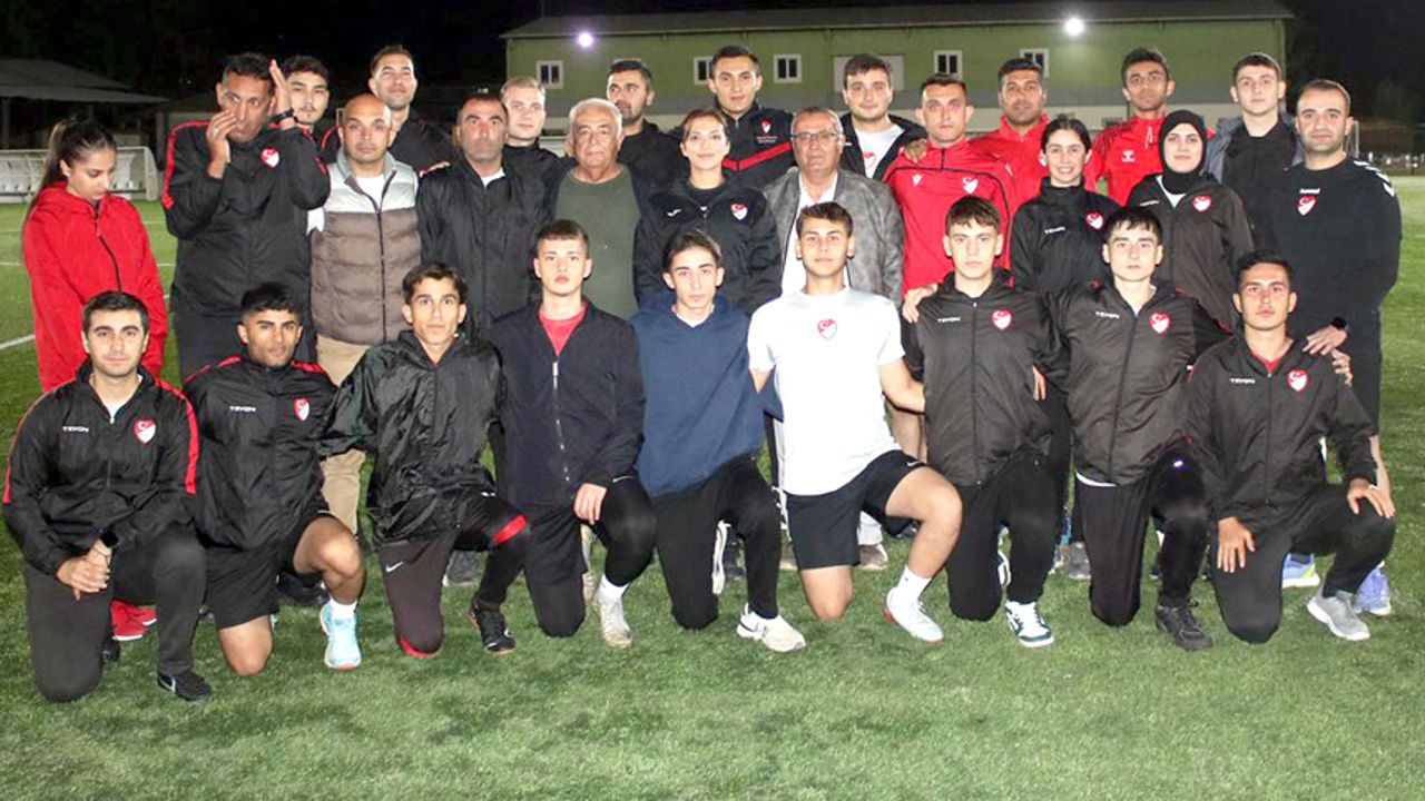 Futbol İl Temsilcisi Engin Ayan ve Amatör Spor Kulüpleri Federasyonu Başkanı Ferhat Arıcı, futbol hakemlerinin antrenmanını ziyaret ederek tatlı ikramında bulundular.