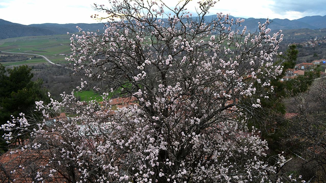 Çorum'un Dodurga ilçesinde badem ağaçları şubat ayında çiçeklendi.