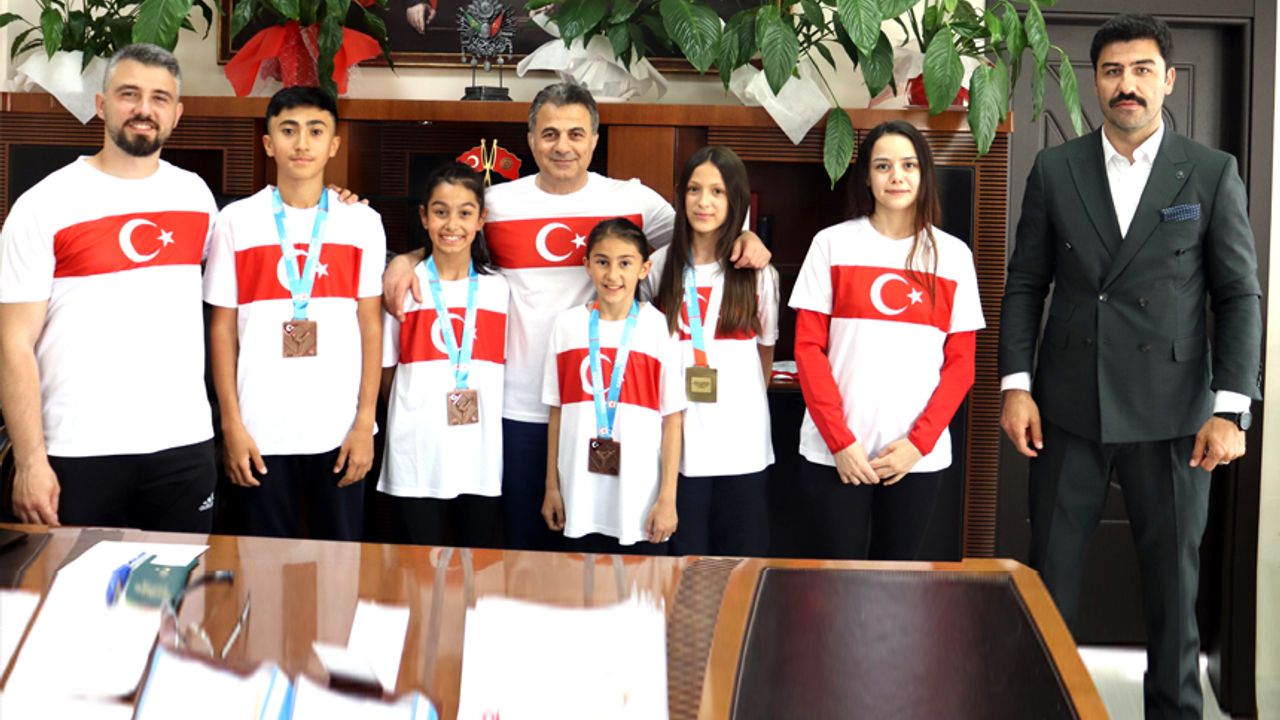 Karate İl Temsilcisi ve milli takım antrenörü Samet Türe ve Sevgi Türe ile birlikte Türkiye Çocuklar Karate Şampiyonsında birinci olan Begüm Akpunar ile üçüncü olan Buğra Özeker, Hatice Sena Çolak ve Elif Gökçe Beşikci ile birlikte Gençlik ve Spor İl Müdürü Mustafa Demirkıran’ı ziyaret etti.