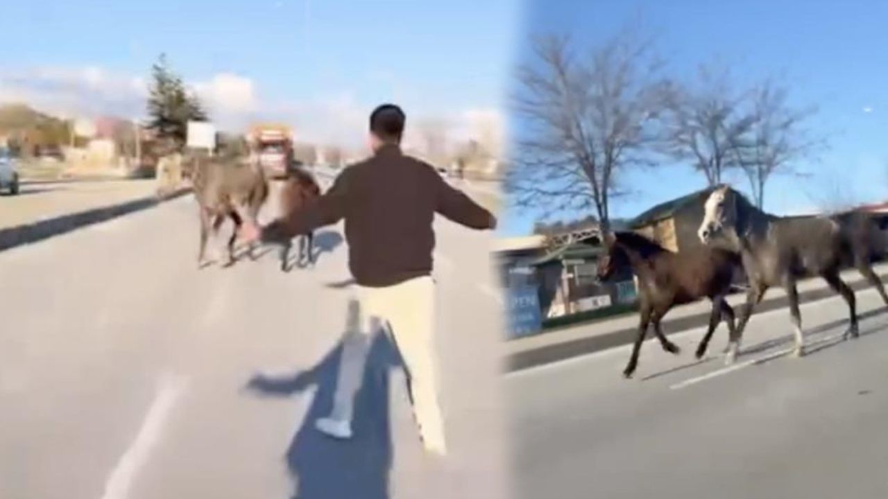 Bazı vatandaşlar ise trafikte koşturan atları uzaklaştırmak için araçlarından indi.