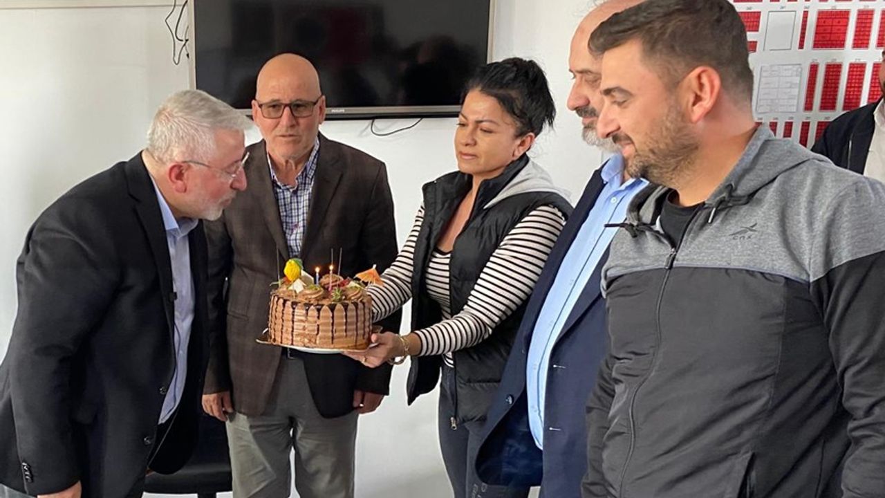 Çorum Belediye Başkanı Dr. Halil İbrahim Aşgın, incelemelerde bulunmak üzere gittiği Zanaatkarlar Küçük Sanayi Sitesi Yapı Kooperatifi’nde doğum günü sürprizi ile karşılaştı.