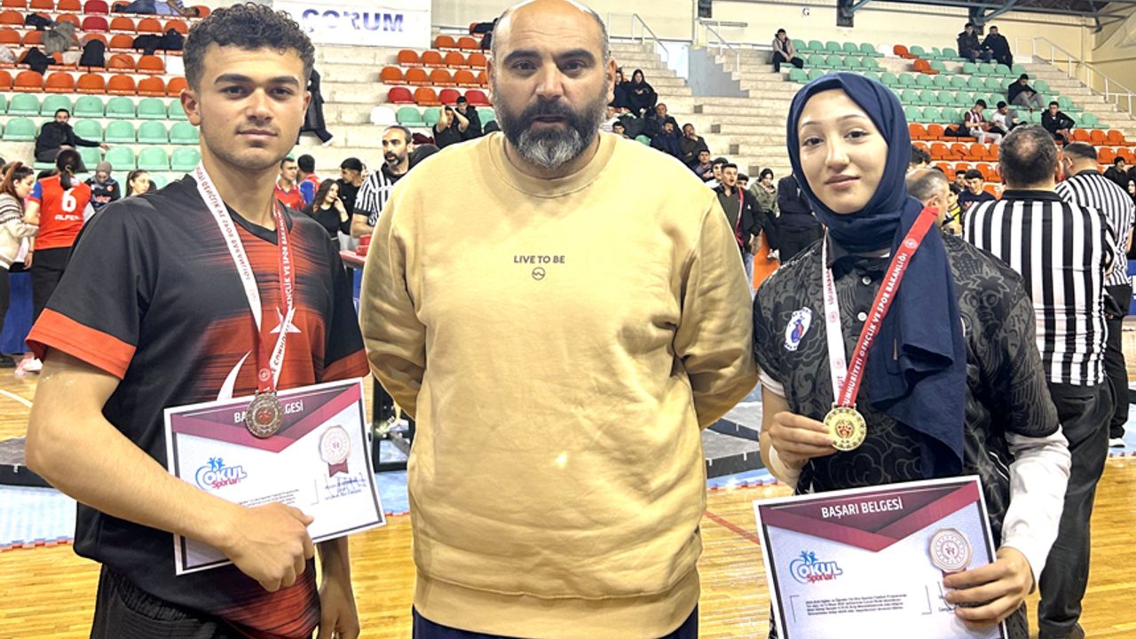 45 kilo sağ kolda Bayat Şehit Yakup Kozan Anadolu İmam Hatip Lisesi öğrencii Medine Değer ve sağ kol erkekler 55 kiloda bayat Mesleki ve Teknik Anadolu Lisesi öğrencisi Burak Eraslan birinci olarak altın madalya kazandılar.