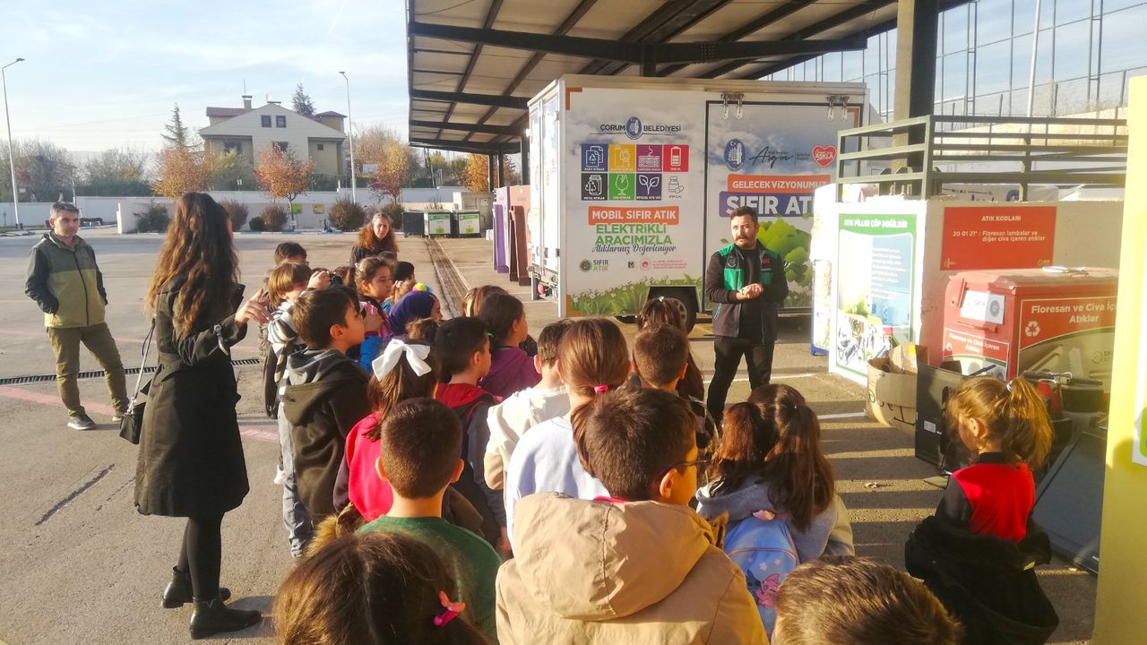 Proje çerçevesinde BİLSEM öğrencileri, Çorum Belediyesi 1. Sınıf Atık Getirme Merkezi’ni ziyaret etti.
