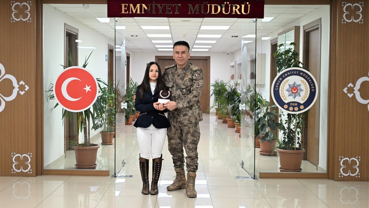 Emniyet Müdürü Arif Pehlivan ise Sesil'i kutlayarak, başarılarının devamını diledi.