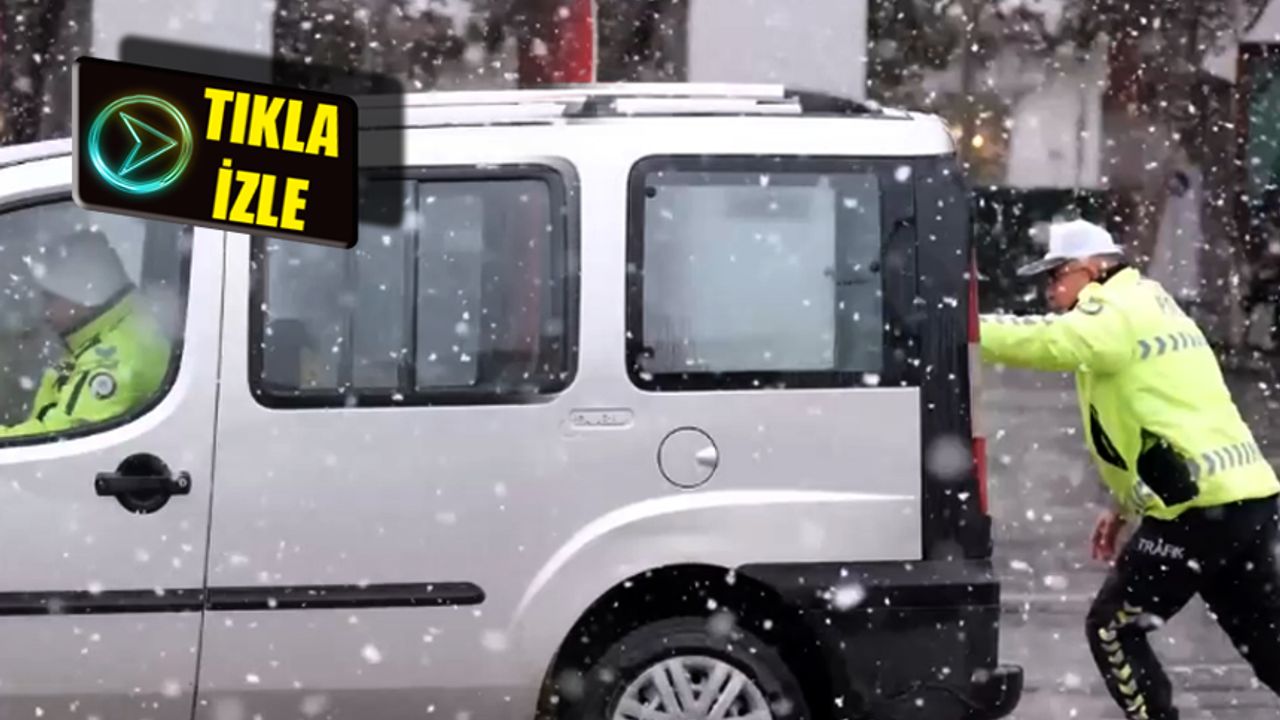 Bozulan aracı bir polis memuru kullanırken, diğeri ise iterek müsait bir yere çekilmesini sağladı.