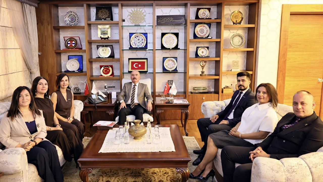 Çorum İş Kadınları Derneği Yönetim Kurulu Başkanı Ebru Gül Çömüz ile Orta Karadeniz Sanayi ve İş Dünyası Federasyonu (ORKASİFED) heyeti Vali Ali Çalgan’ı makamında ziyaret etti.