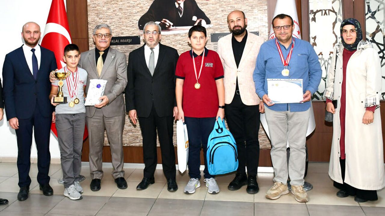 Turnuvada dereceye giren sporcular ve okul müdürleri ile birlikte Milli Eğitim Müdürü Cemil Çağlar’ı ziyaret etti.