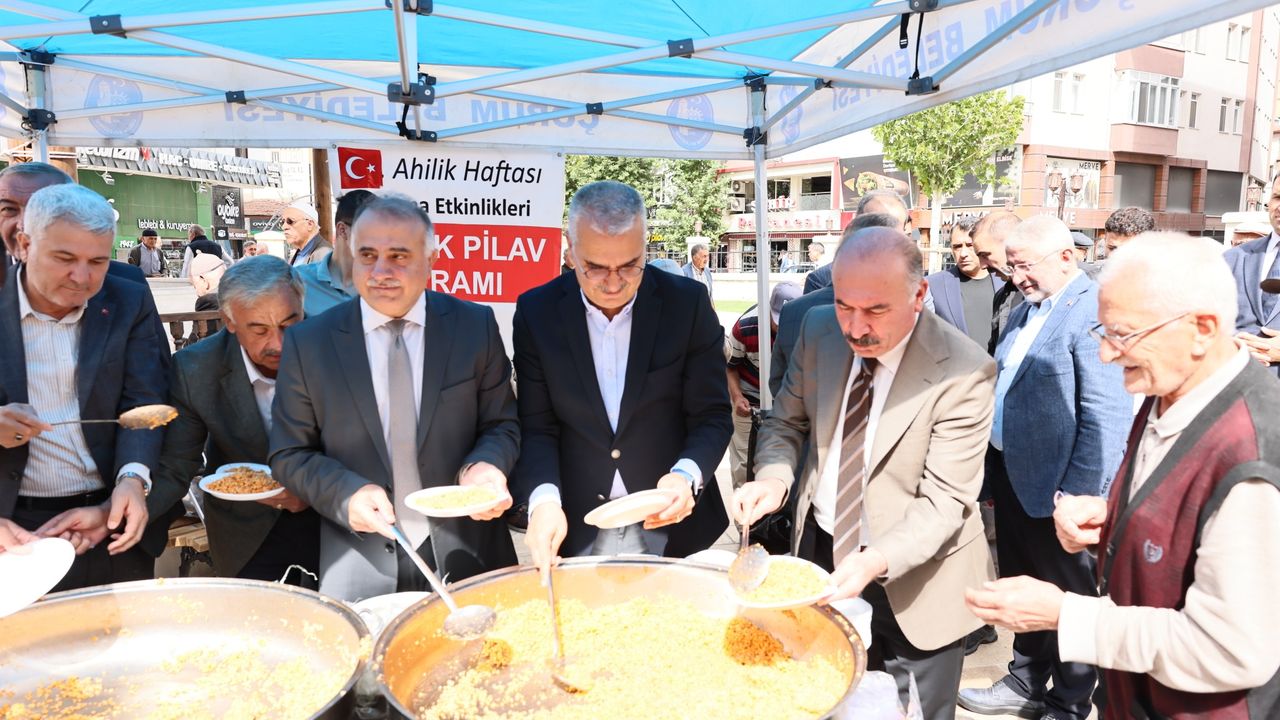 Çorum'da Ahilik Haftası etkinlikleri kapsamında Cuma namazı çıkışı vatandaşlara Ahilik pilavı dağıtıldı.