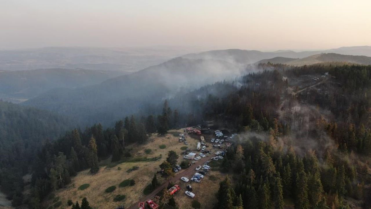 Öte yandan, yanan ormanlık alan havadan görüntülendi.