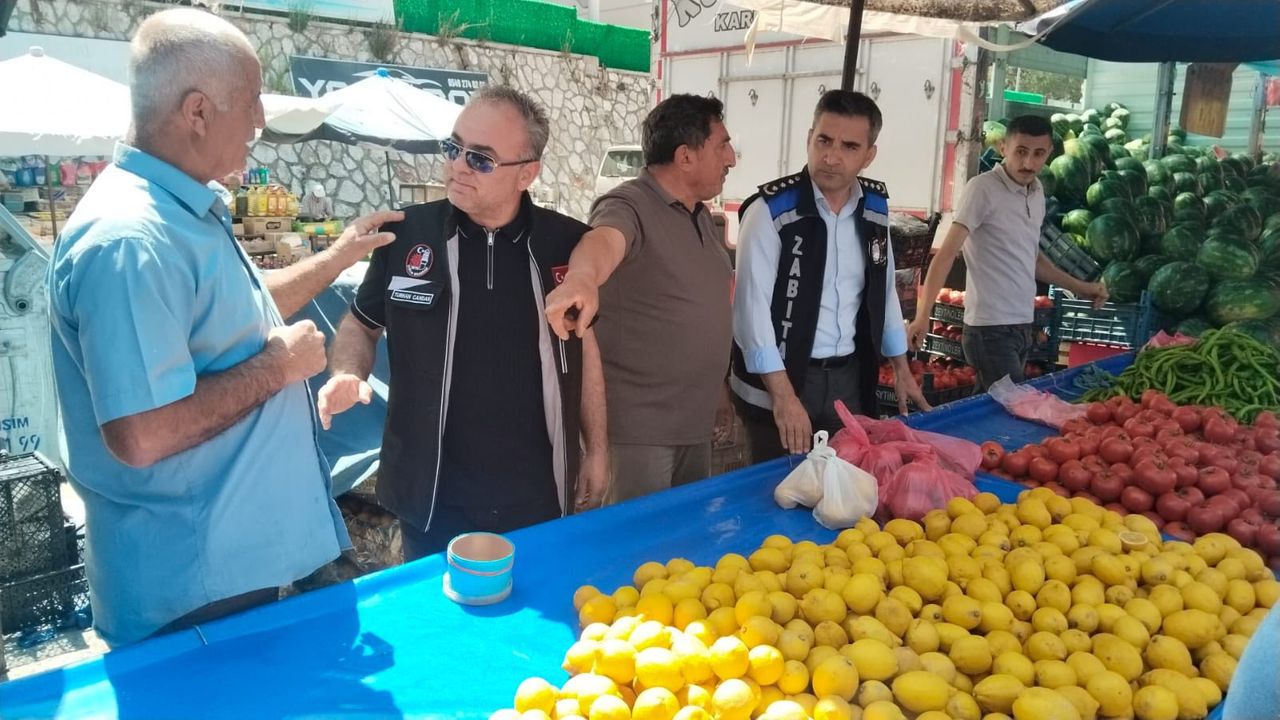 Belediye Başkan Yardımcısı Turhan Candan, Zabıta Müdürü İrfan Göyhan ve zabıta ekipleri Çarşamba pazarında yer alan tezgahları denetledi.
