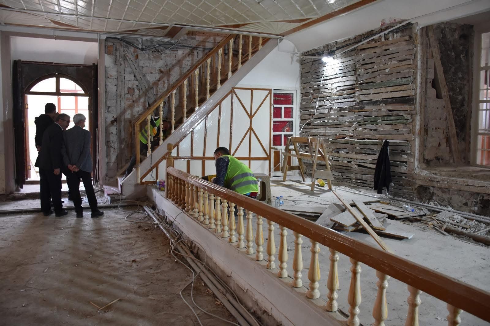 Zemin, tavan, duvar ve ahşap bölümlerde yapılan çalışmalar, yapının özgün dokusuna uygun şekilde gerçekleştiriliyor.