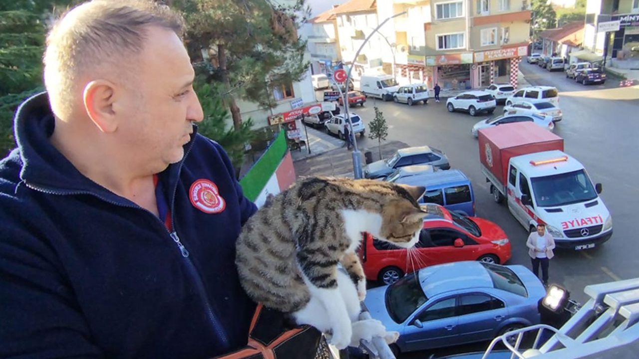 Çorum'un Sungurlu İlçe Milli Eğitim Müdürlüğü binasının çatısında mahsur kalan kedi itfaiye ekiplerince kurtarıldı.