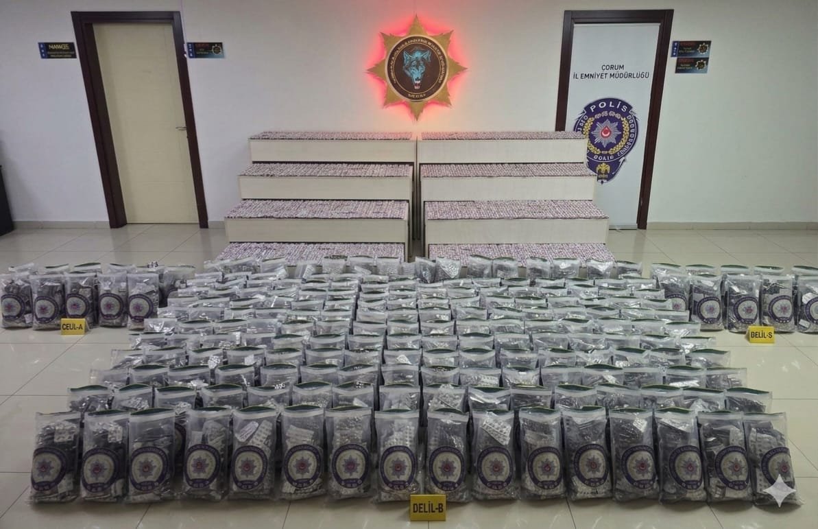 Çekici ve bağlı dorse içerisinde yapılan adli aramalarda 249 bin 424 adet sentetik ecza, 1,40 gram metamfetamin ve 10 bin 400 TL para ele geçirildi.