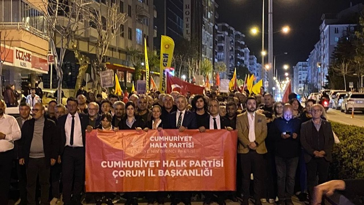 Yürüyüşe CHP Çorum Milletvekili Mehmet Tahtasız, İl Başkanı Dinçer Solmaz, Merkez İlçe Başkanı Utku Ulaş Taşar, İl Kadın Kolları Başkanı Özlem Güngör ile partililer katıldı.