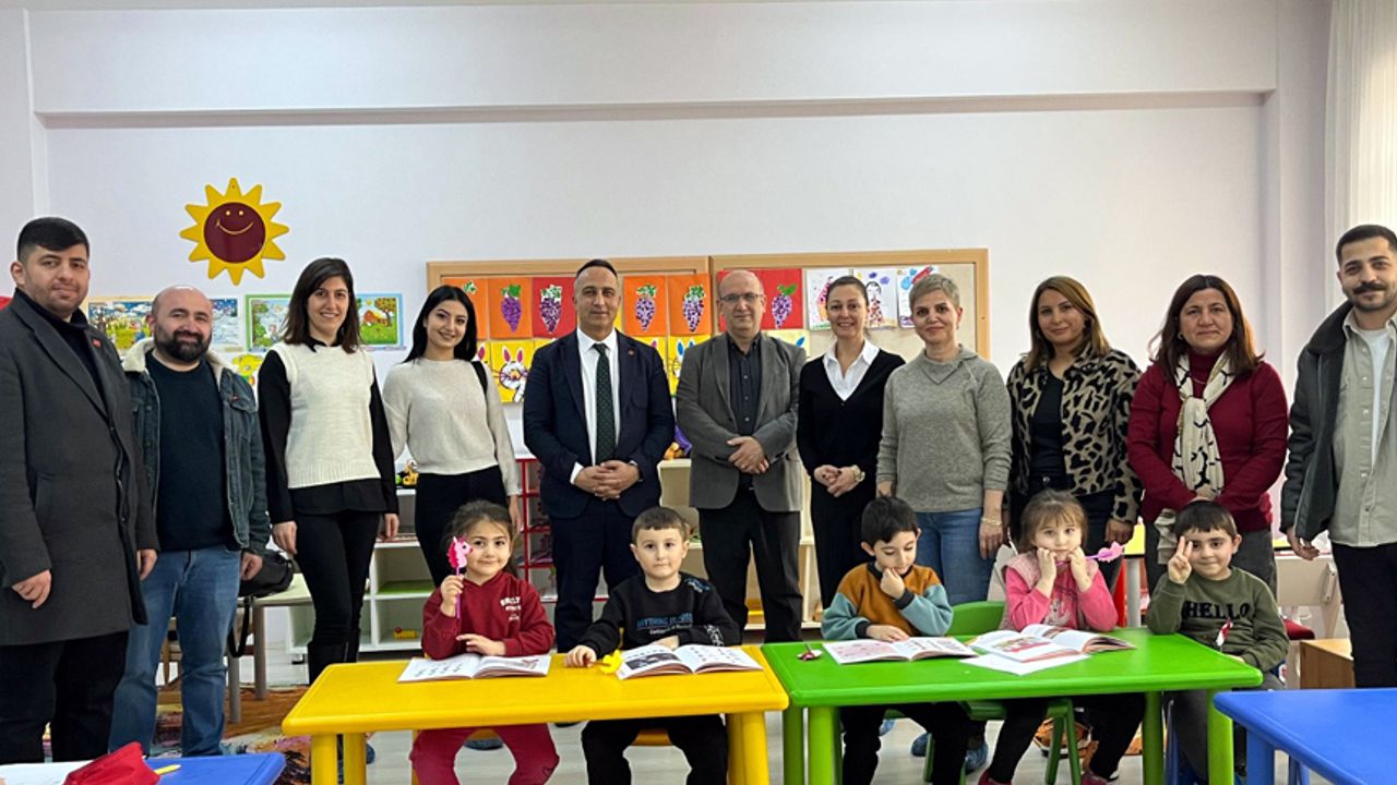 Çocuklarla birlikte derslere katılan, resim yapan Solmaz ve beraberindekiler, miniklerin yaptıkları resimleri kendilerine hediye etmesiyle de büyük mutluluk yaşadı.