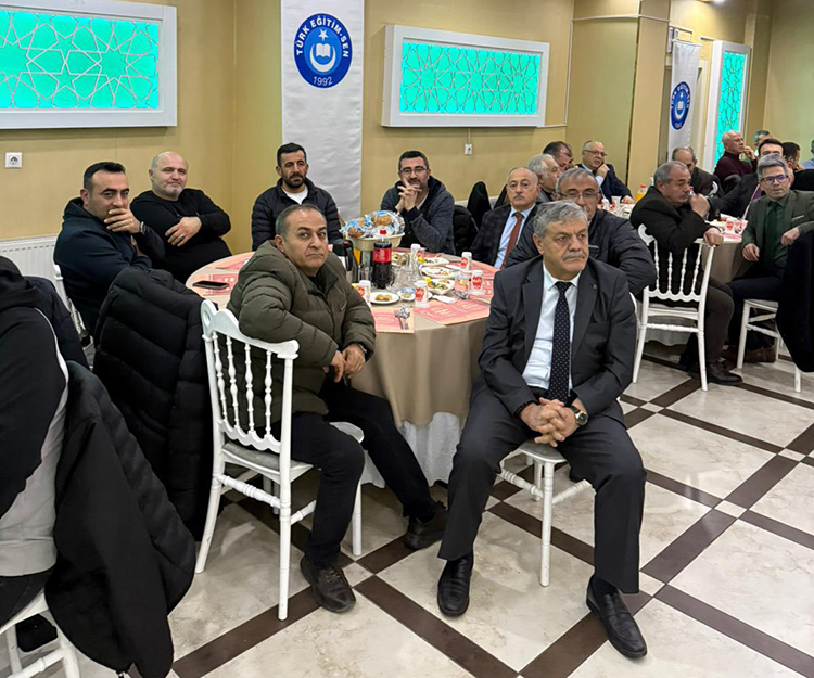 Öğretmenevinde gerçekleştirilen toplantıya Türk Eğitim-Sen Genel Başkan Yardımcısı Selahattin Dolgun, Şube Başkanı Abdullah Güdek, TÜRKAV İl Temsilcisi İsmail Deli ve sendika yönetim kurulu üyeleri katıldı.