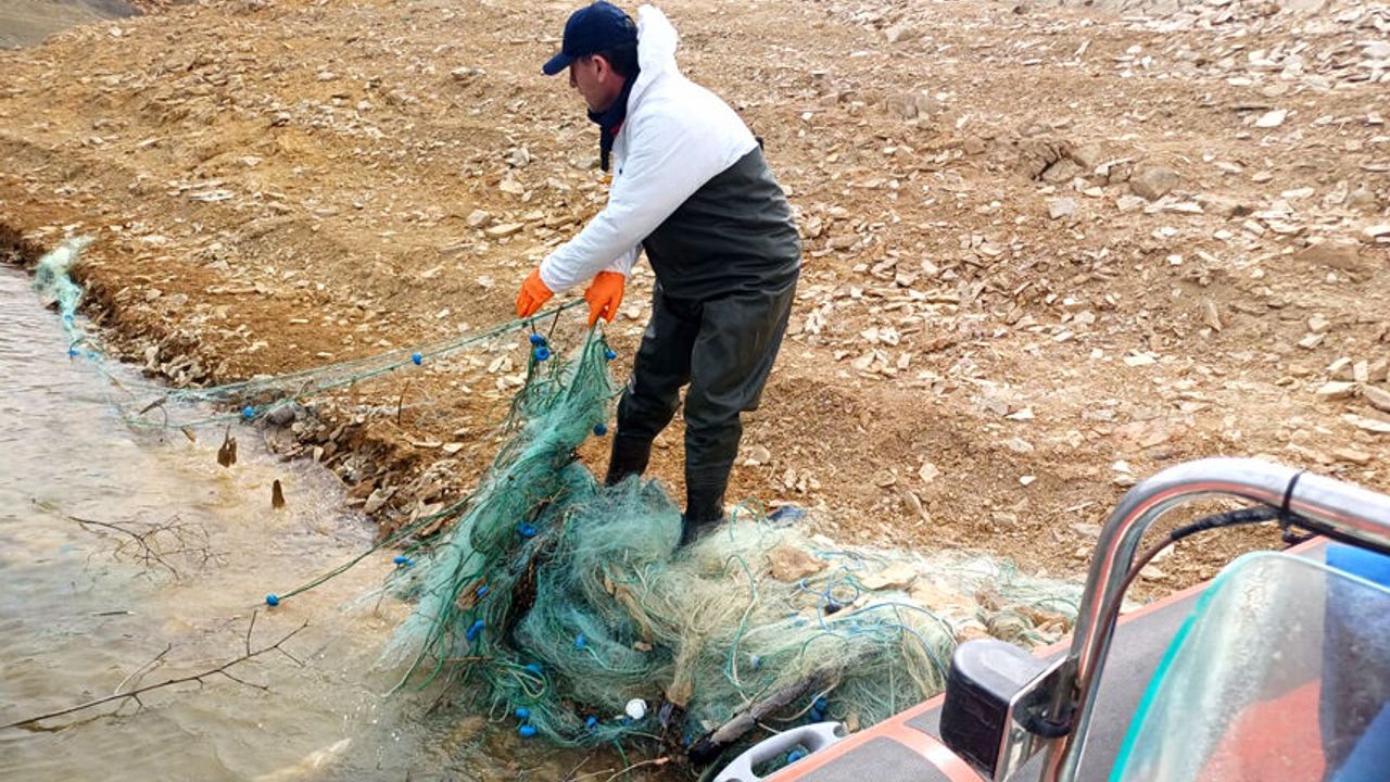 Denetimler sırasında su ürünleri avcılığının yasak olmasına rağmen kullanımda olduğu tespit edilen yaklaşık 600 metre uzunluğundaki misina ağı ekipler tarafından tespit edilerek el konuldu.