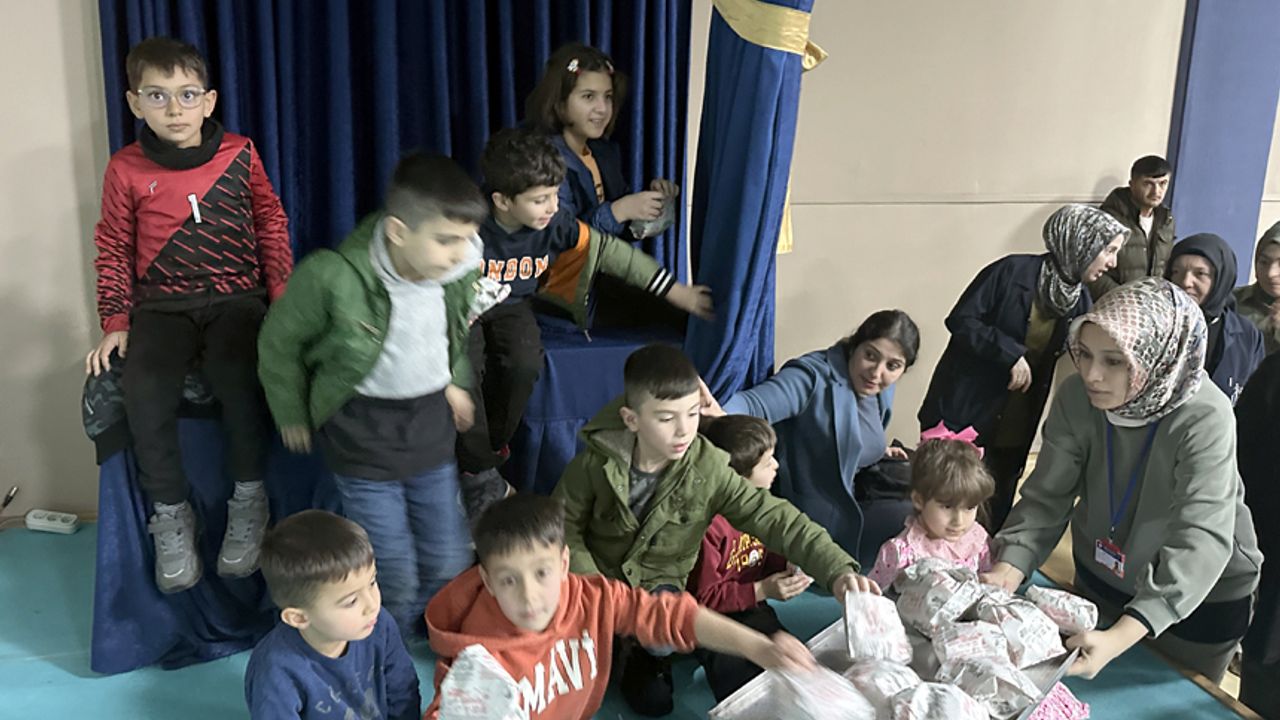 Yüzlerce çocuğun bir arada film izlediği sinema etkinliğinde çocuklara mısır ikramında bulunuldu.