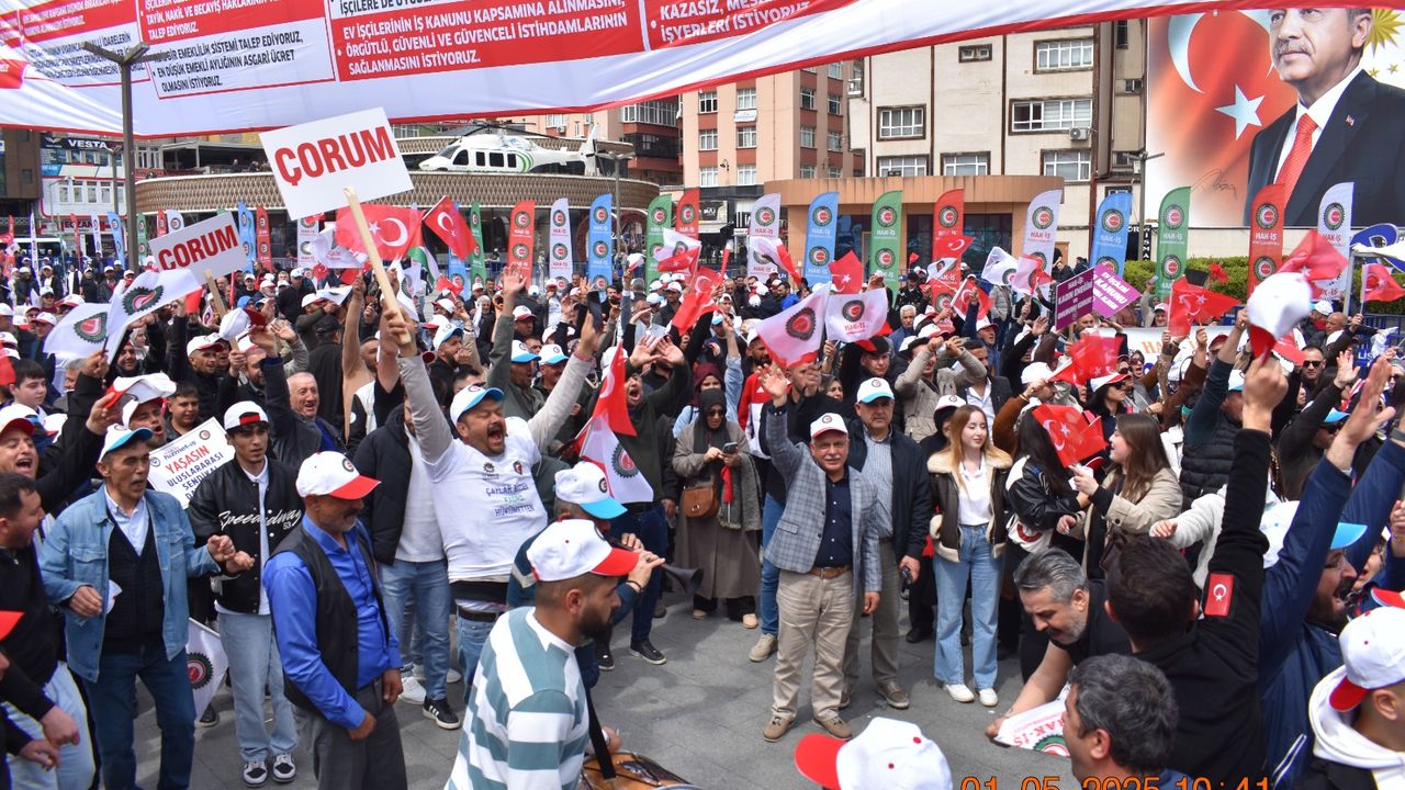 Hak-İş İl Başkanı Mustafa Köroğlu ve sendika üyesi işçiler, bu yıl 1 Mayıs Emek ve Dayanışma Günü’nde Rize’de düzenlenen kitlesel mitinge katıldı.